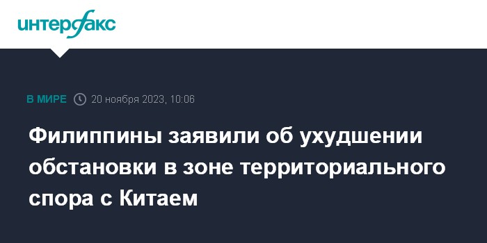 Москва. 20 ноября. INTERFAX.RU - Филиппинский президент Фердинанд Маркос-младший заявил, что обстановка в той зоне Южно-Китайского моря, где у Филиппин и КНР существует территориальный спор, усугубляется.