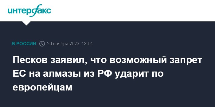 Песков заявил, что возможный запрет ЕС на алмазы из РФ ударит по европейцам
