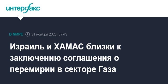 Ранее The Washington Post писала, что Израиль, Соединенные Штаты и ХАМАС близки к тому, чтобы заключить соглашение, которое позволит освободить часть заложников, удерживаемых в Газе, в обмен на пятидневную паузу в боевых действиях.