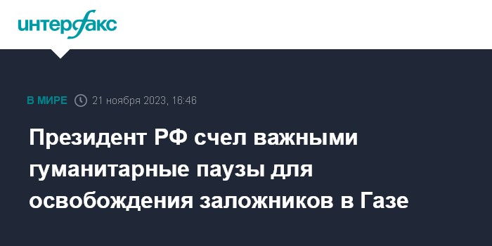 Президент РФ счел важными гуманитарные паузы для освобождения заложников в Газе