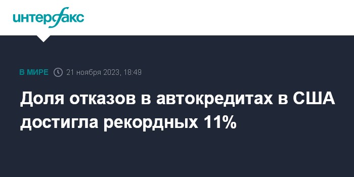 Доля отказов в автокредитах в США достигла рекордных 11%