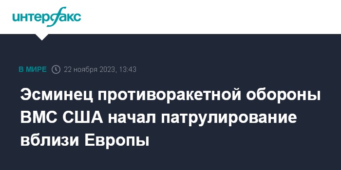 Эсминец противоракетной обороны ВМС США начал патрулирование вблизи Европы