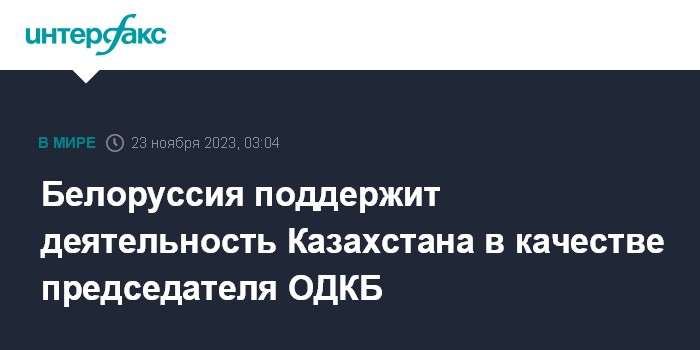 "Хотел бы отметить, что заместитель премьер-министра - министр иностранных дел Республики Казахстан Мурат Нуртлеу представил сегодня на заседании краткую информацию о приоритетных направлениях деятельности в период председательства в ОДКБ Республики Казахстан в 2024 году. Мы их, безусловно, поддерживаем и будем всячески содействовать их реализации", - цитирует главу МИД издание "СБ. Беларусь сегодня".