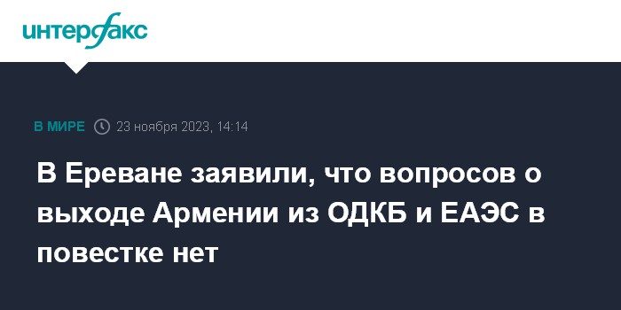 В Ереване заявили, что вопросов о выходе Армении из ОДКБ и ЕАЭС в повестке нет
