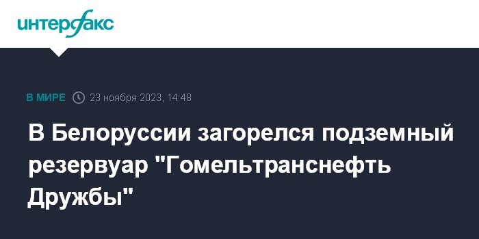 Москва. 23 ноября. INTERFAX.RU - МЧС Белоруссии распространило в четверг сообщение о возгорании нефтяного подземного резервуара "Гомельтранснефть Дружбы".