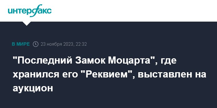 "Последний Замок Моцарта", где хранился его "Реквием", выставлен на аукцион
