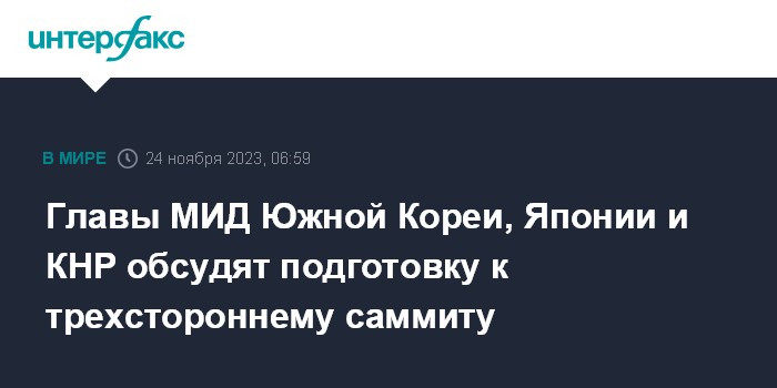 Главы МИД Южной Кореи, Японии и КНР обсудят подготовку к трехстороннему саммиту