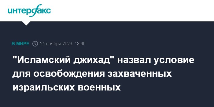 "Исламский джихад" назвал условие для освобождения захваченных израильских военных