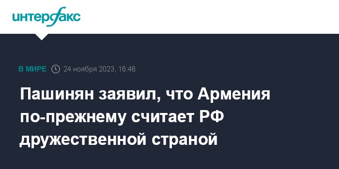 Пашинян заявил, что Армения по-прежнему считает РФ дружественной страной
