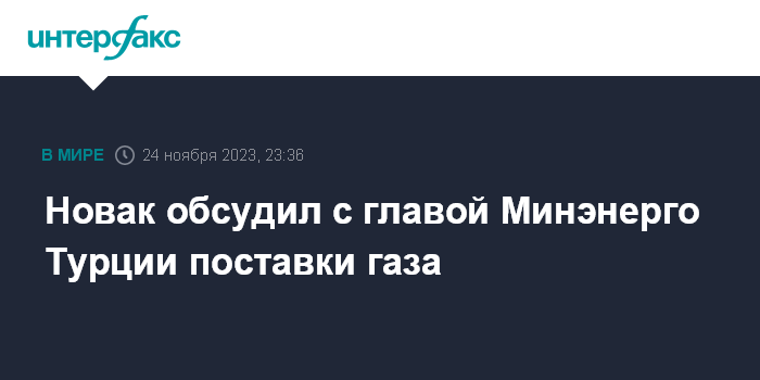 Новак обсудил с главой Минэнерго Турции поставки газа