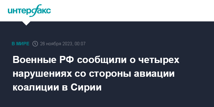 Военные РФ сообщили о четырех нарушениях со стороны авиации коалиции в Сирии
