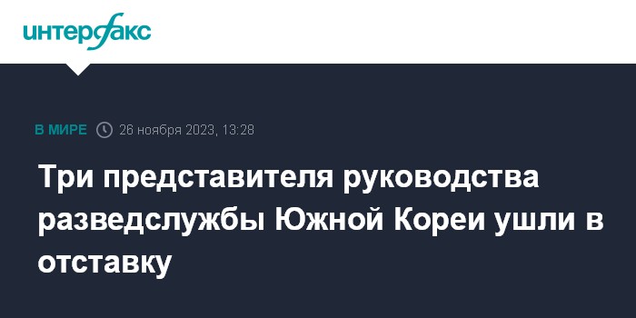 Москва. 26 ноября. INTERFAX.RU - Глава Национальной разведывательной службы Южной Кореи Ким Гю Хюн и два его заместителя в воскресенье подали в отставку, сообщает Yonhap со ссылкой на канцелярию главы государства.