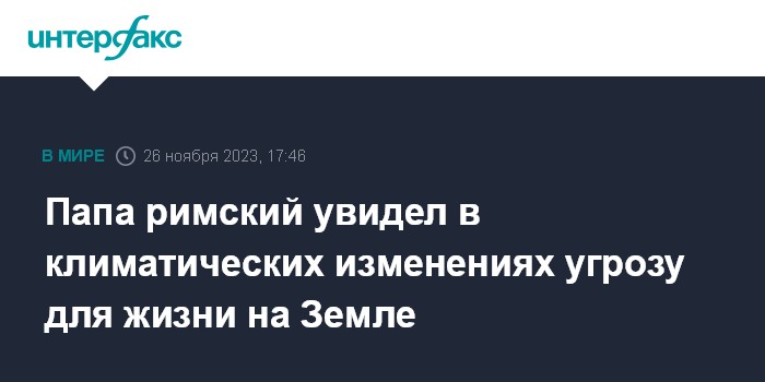 Москва. 26 ноября. INTERFAX.RU - Папа римский Франциск заявляет об угрозе миру на фоне климатической ситуации.