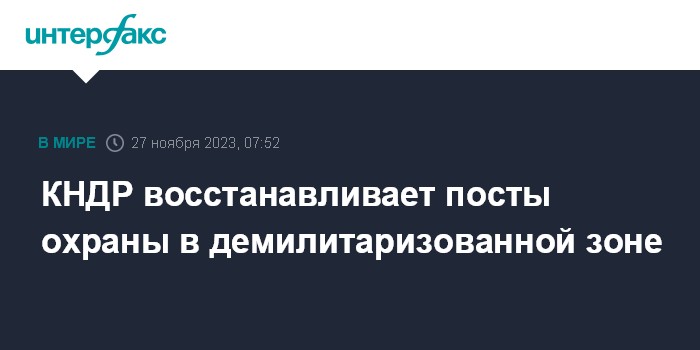 Москва. 27 ноября. INTERFAX.RU - Северная Корея направила солдат и технику в демилитаризованную зону для восстановления постов охраны, ликвидированных в соответствии с межкорейским военным соглашением 2018 года, сообщает "Ренхап" со ссылкой на южнокорейских военных.