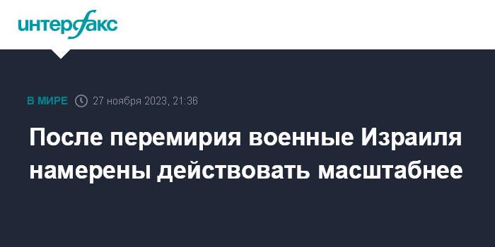 Москва. 27 ноября. INTERFAX.RU - Операция Армии обороны Израиля (ЦАХАЛ) распространится на всю территорию сектора Газа после того, как завершится перемирие между Израилем и группировкой ХАМАС, заявил глава израильского Минобороны Йоав Галлант.