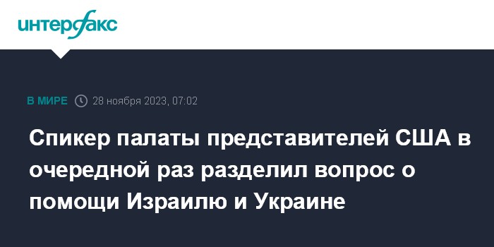Спикер палаты представителей США в очередной раз разделил вопрос о помощи Израилю и Украине