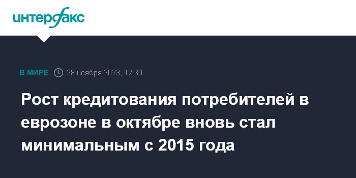 Москва. 28 ноября. INTERFAX.RU - Рост объемов потребительского кредитования в еврозоне в октябре снова обновил минимум с июня 2015 года.