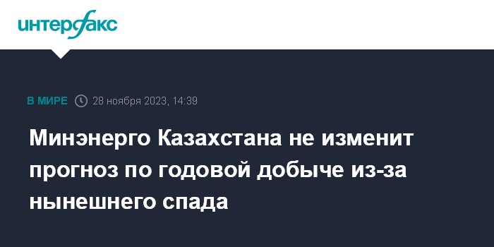 Москва. 28 ноября. INTERFAX.RU - Сокращение добычи в Казахстане из-за приостановки погрузки нефти Каспийским трубопроводным консорциумом не повлияет на прогноз добычи по итогам 2023 года, рассчитывают в Министерстве энергетики республики.