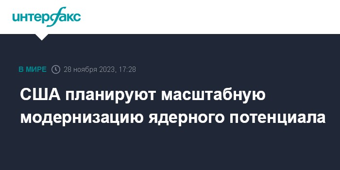 Москва. 28 ноября. INTERFAX.RU - США планируют провести модернизацию ряда ядерных боеприпасов, а также произвести новые, следует из данных доклада Национального управления по ядерной безопасности (NNSA) Конгрессу.