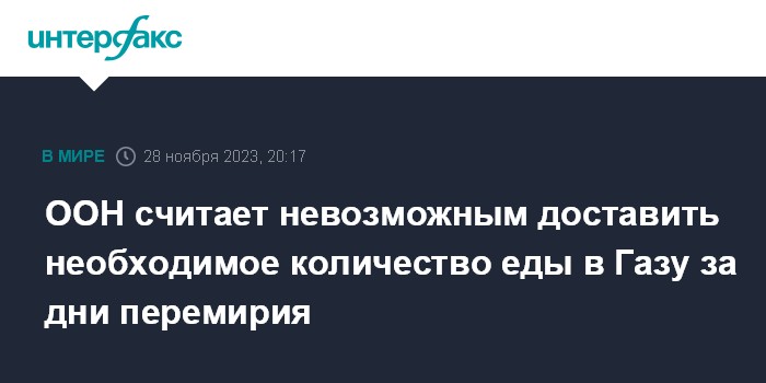 ООН считает невозможным доставить необходимое количество еды в Газу за дни перемирия