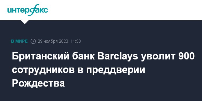 Британский банк Barclays уволит 900 сотрудников в преддверии Рождества