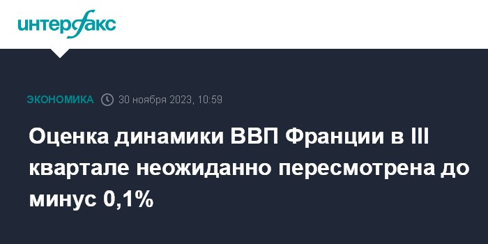 Оценка динамики ВВП Франции в III квартале неожиданно пересмотрена до минус 0,1%