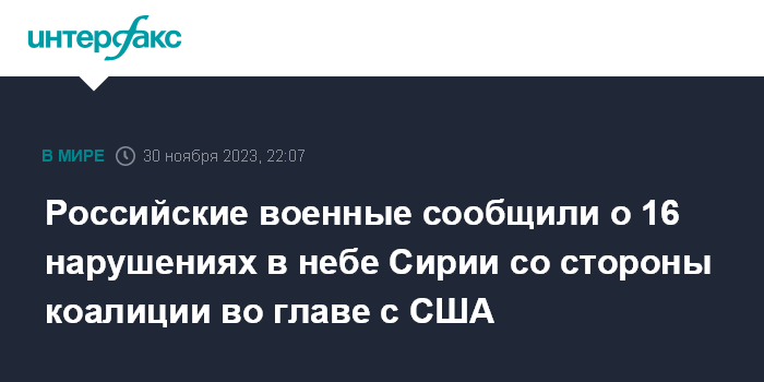 Российские военные сообщили о 16 нарушениях в небе Сирии со стороны коалиции во главе с США