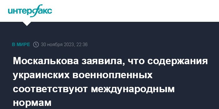 Москалькова заявила, что содержания украинских военнопленных соответствуют международным нормам
