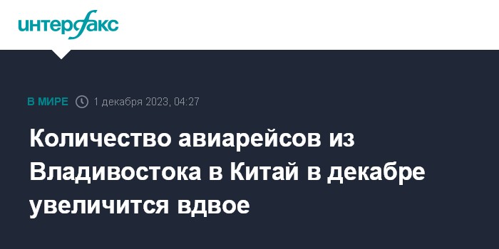 " С 10 декабря добавится рейс в Пекин авиакомпании "Аврора" (по воскресеньям), а с 18 декабря - еще пять рейсов авиакомпании "Россия". Кроме того, с 24 декабря авиакомпания "Россия" начнет выполнять полеты в Харбин три раза в неделю", - говорится в сообщении агентства.