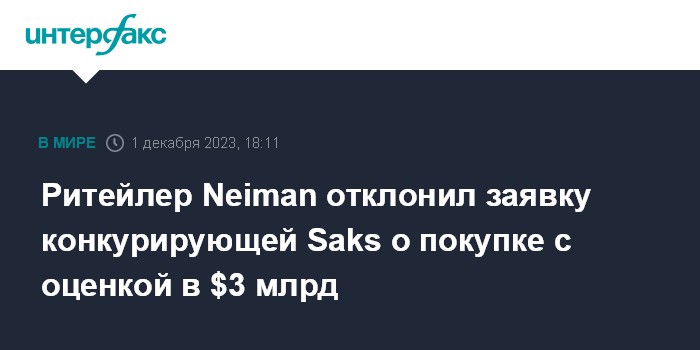 Ритейлер Neiman отклонил заявку конкурирующей Saks о покупке с оценкой в $3 млрд