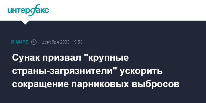 Сунак призвал "крупные страны-загрязнители" ускорить сокращение парниковых выбросов
