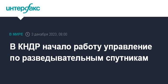 Москва. 3 декабря. INTERFAX.RU - Сформированная при Государственном главном управлении по аэрокосмической технике КНДР специальная структура по разведывательным спутникам приступила к работе в минувшую субботу, сообщило в воскресенье агентство ЦТАК.