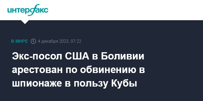 Экс-посол США в Боливии арестован по обвинению в шпионаже в пользу Кубы