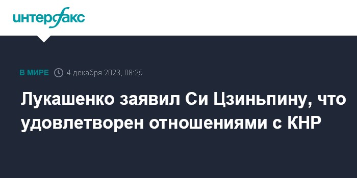 Лукашенко заявил Си Цзиньпину, что удовлетворен отношениями с КНР