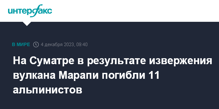 На Суматре в результате извержения вулкана Марапи погибли 11 альпинистов
