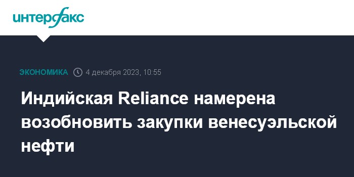 Индийская Reliance намерена возобновить закупки венесуэльской нефти