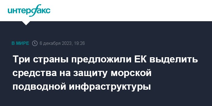 "В ответ на недавние события, влияющие на подводную инфраструктуру в Балтийском море, Финляндия, Эстония и Швеция предлагают Комиссии ЕС предложить меры по повышению безопасности и устойчивости европейской подводной инфраструктуры. В своем совместном письме министры подчеркнули необходимость дальнейших инвестиций в подводные телекоммуникационные кабели на уровне Европейского Союза", - сказано в пресс-релизе.