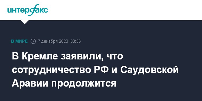 В Кремле заявили, что сотрудничество РФ и Саудовской Аравии продолжится
