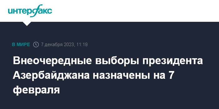 Внеочередные выборы президента Азербайджана назначены на 7 февраля