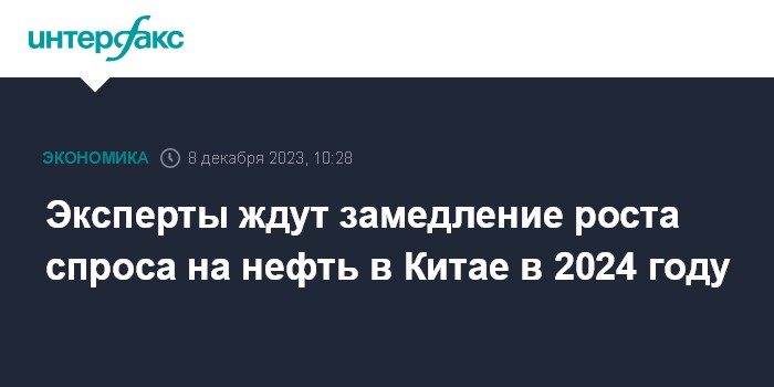 Консенсус-прогноз отраслевых экспертов и аналитиков, опрошенных агентством Bloomberg, предполагает, что спрос на углеводороды в КНР в 2024 году увеличится на 500 тысяч баррелей в сутки, что составляет менее трети роста в 2023 году.