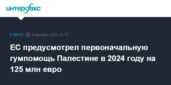ЕС предусмотрел первоначальную гумпомощь Палестине в 2024 году на 125 млн евро