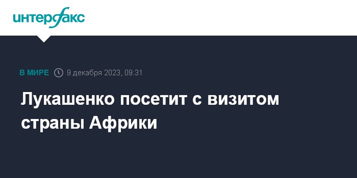 Москва. 9 декабря. INTERFAX.RU - Президент Белоруссии Александр Лукашенко направился с официальным визитом в ряд африканских стран, сообщила в субботу пресс-служба главы государства..