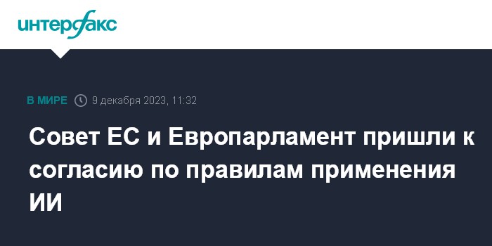 Москва. 9 декабря. INTERFAX.RU - Совет ЕС объявил в субботу, что достиг с Европейским парламентом предварительного соглашения относительно предложения о первых в мире гармонизированных правилах в области искусственного интеллекта, так называемом "законе об ИИ".