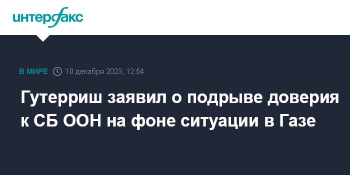 Гутерриш заявил о подрыве доверия к СБ ООН на фоне ситуации в Газе