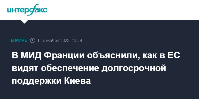 В МИД Франции объяснили, как в ЕС видят обеспечение долгосрочной поддержки Киева
