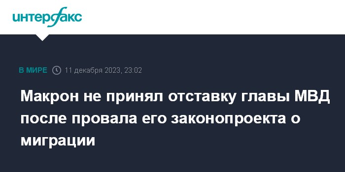 Макрон не принял отставку главы МВД после провала его законопроекта о миграции