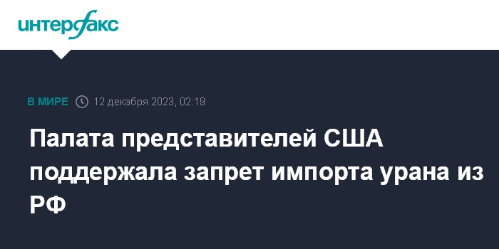 Москва. 12 декабря. INTERFAX.RU - Палата представителей США одобрила законопроект, запрещающий импорт обогащенного урана из России, сообщают американские СМИ.