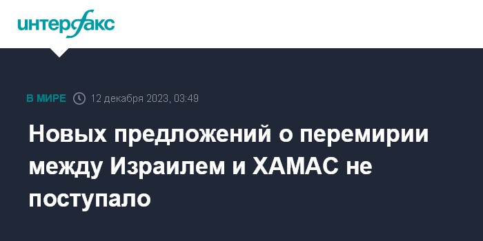 Москва. 12 декабря. INTERFAX.RU - Израиль и ХАМАС не предлагали новое прекращение огня с момента окончания действия перемирия 1 декабря, пишет Haaretz.