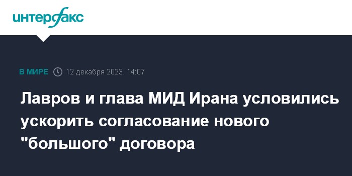 Лавров и глава МИД Ирана условились ускорить согласование нового "большого" договора