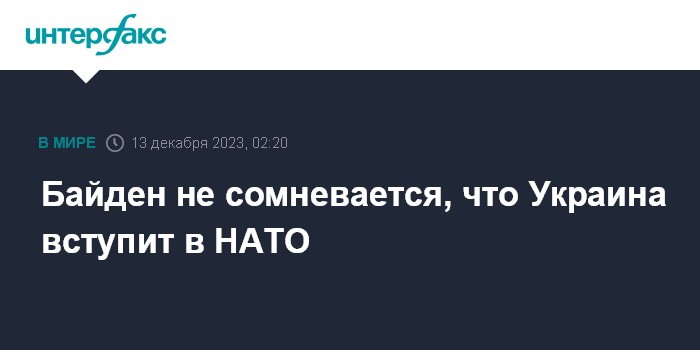 Москва. 13 декабря. INTERFAX.RU - Президент США Джо Байден заявил об уверенности в том, что Украина в будущем станет членом НАТО, но отметил, что "до этого нужно решить ряд вопросов".